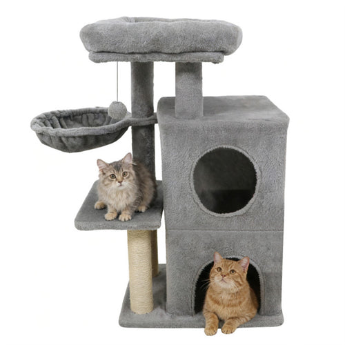 Dark Gray 33.5" Multi-Level Cat Tree with 2-Tier Condo, Sisal Scratching Posts & Anti-Toppling Device for Cats